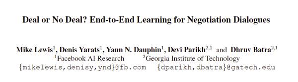 Facebook 官博论文介绍:https://code.facebook.com/posts/1686672014972296/deal-or-no-deal-training-ai-bots-to-negotiate/