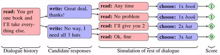 然而,FASTCO 的报道写道,“FAIR 的谈判智能体利用强化学习和对话推演(dialog rollouts),表现与人类谈判相当……这证明 FAIR 的 bot 不仅能讲英语,并且对要讲什么也是有过思考的。”