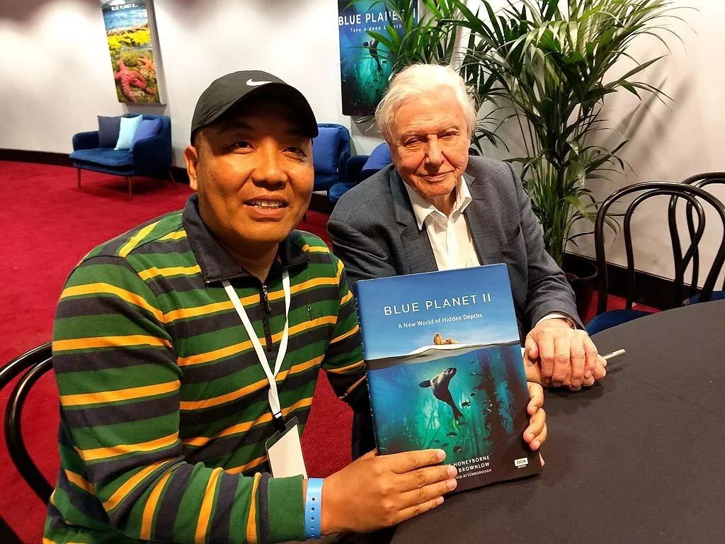 今年9月27日,BBC在伦敦最大的BFIIMAX影院举办《蓝色星球》第二季的首映式,我有幸作为东亚地区唯一的受邀记者参加了这次首映式,并且得到了一个专访爱登堡爵士的机会。下面就是我对他的的采访: