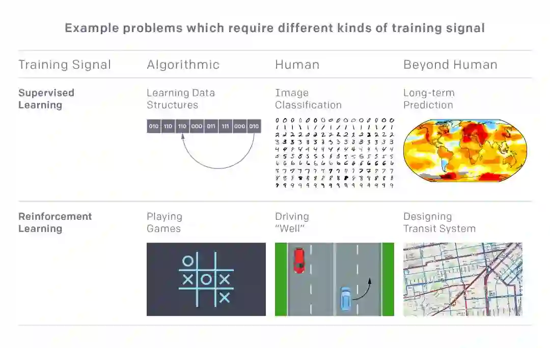 如果我们想训练一个机器学习系统执行任务,就需要一个训练信号,这是一种衡量系统表现的方法,从而能帮助它更好地学习。例如,监督学习中的标签或强化学习中的奖励都可以看作训练信号。机器学习的组织规则通常假设一种训练信号已经有现成的了,我们应该关注从中学习,但是事实上,训练信号必须从别处得到。如果没有训练信号,就无法学习任务。如果得到了错误的训练信号,就会得到错误、甚至危险的行为。所以,提高生成训练信号的能力对学习新任务和AI安全性都是有利的。