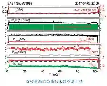 在核聚变领域,合肥研究院自主设计、建设、运行了世界上首台全超导非圆截面托卡马克核聚变实验装置(EAST,俗称“小太阳”),为世界稳态近堆芯聚变物理和工程研究搭建了重要实验平台。1998年7月立项,2000年10月开工,2007年3月通过验收。2017年7月3日,EAST获得超过100秒的完全非感应电流驱动(稳态)高约束模等离子体,成为世界首个实现稳态高约束模运行持续时间达到百秒量级的托卡马克核聚变实验装置,其科学研究成果为国际热核聚变实验反应堆(ITER)长脉冲高约束运行提供了实验支持,为我国下一代聚变装置——中国聚变工程实验堆(CFETR)的设计和预研奠定了基础。EAST的建设运行使我国托卡马克研究走向世界前沿,成为该领域国际上最重要的研究中心之一。获2007年度中国科学院杰出科技成就奖、2008年度国家科学技术进步奖一等奖、2013年度国家科学技术进步奖一等奖。