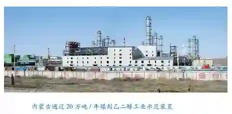 2008年,福建物构所世界首创万吨级一氧化碳气相催化合成草酸酯和草酸酯催化加氢合成乙二醇(煤制乙二醇)成套技术,在内蒙古通辽市成功实现了世界首套20万吨/年煤制乙二醇工业示范装置,改变了我国乙二醇原料长期依赖进口的局面,获2009年度中国科学院杰出科技成就奖。已技术许可6套装置并建成投产运行,形成120万吨产能。