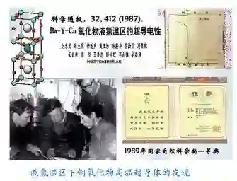 1987年,物理所在铜氧化物超导体的研究中作出了重大贡献,独立发现了液氮温区铜氧化物超导体,并首次在国际上公布其元素组成为Ba–Y–Cu–O。获1989年度国家自然科学奖一等奖。