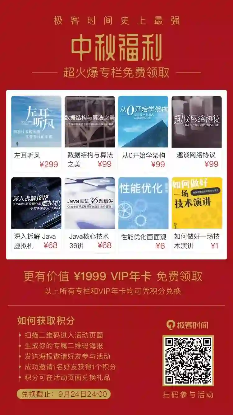 壕礼一:中秋节期间,限时积分免费换购畅销专栏。