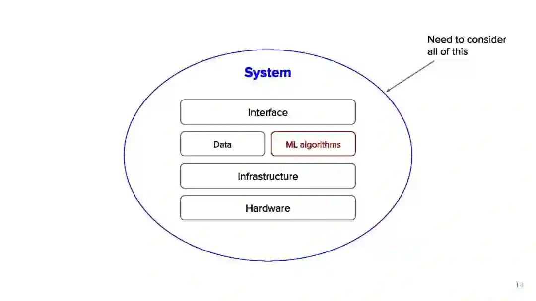 大多数ML课程只涵盖ML算法部分。在本课程中,我们不会教你不同的ML算法,但我们会看看整个系统。