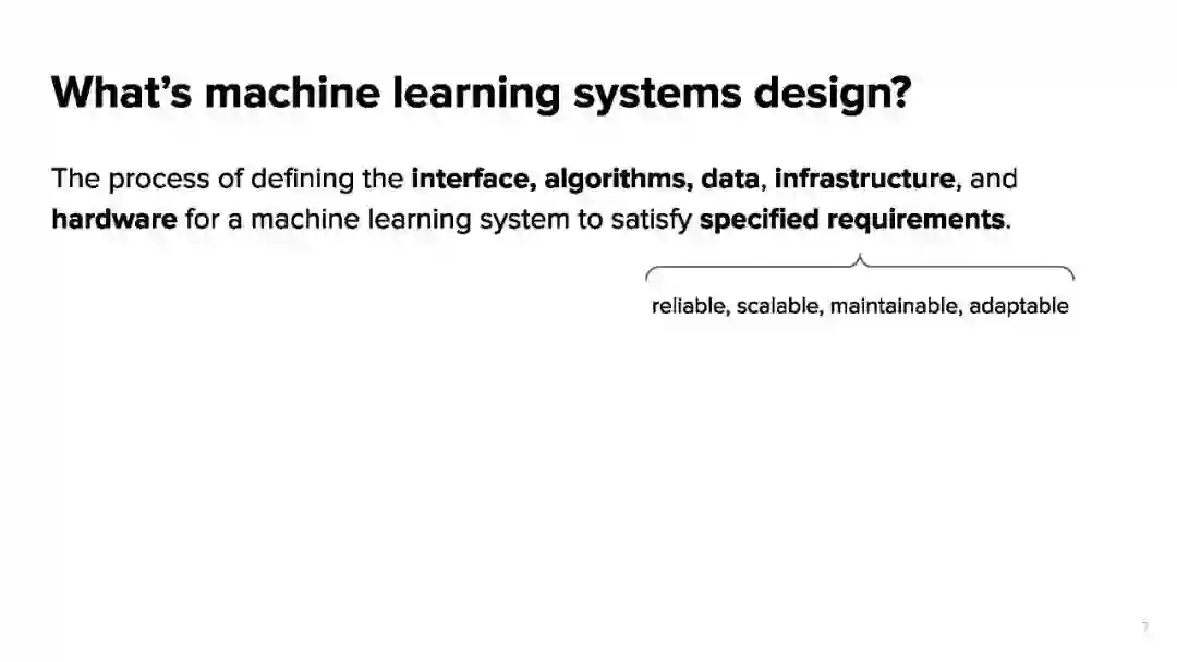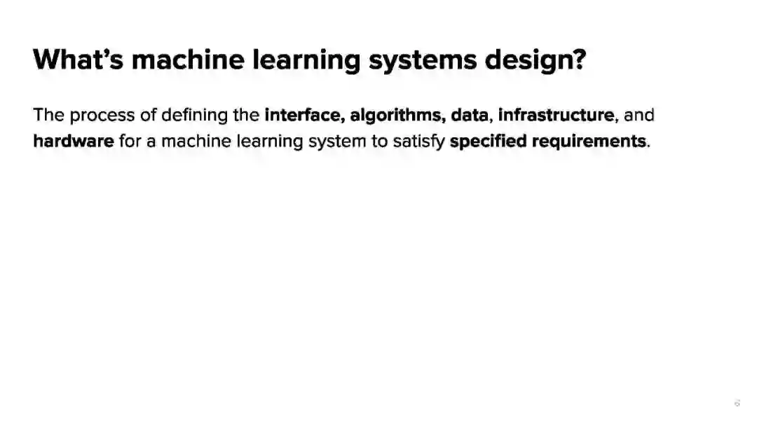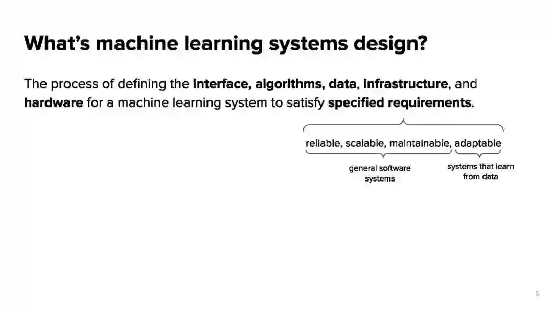 机器学习系统设计是为机器学习系统定义接口、算法、数据、基础设施和硬件以满足特定要求的过程。