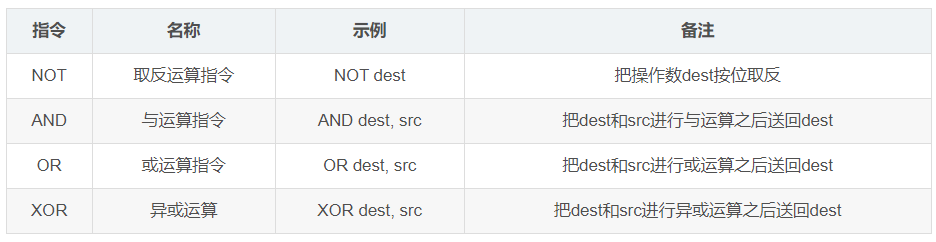 逻辑运算指令