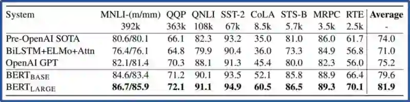 BERT 论文中结果 https://arxiv.org/abs/1810.04805
