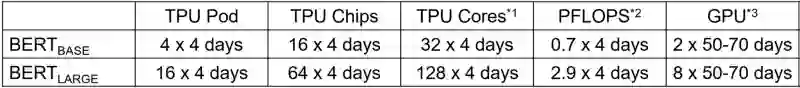BERT训练设备和时间 for BERT; 使用TPU数量和GPU估算.