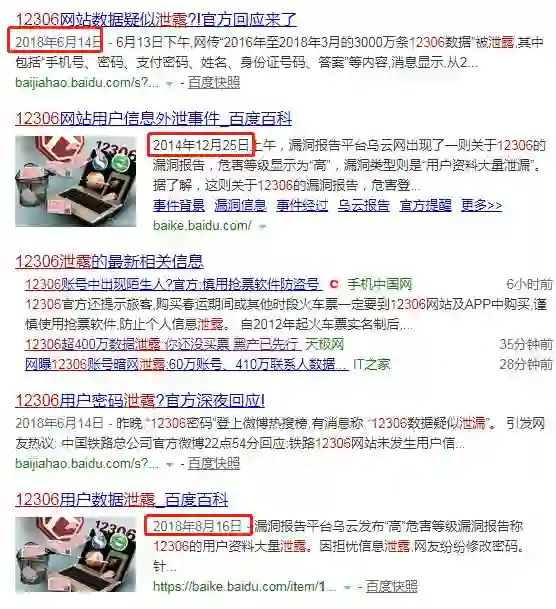 12306已经不是第一次泄露数据了