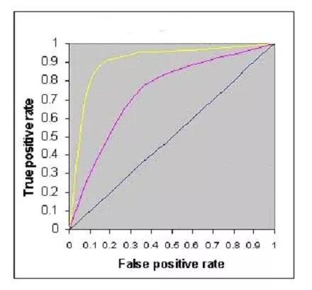 下图显示了三个逻辑回归模型的AUC-ROC曲线。不同的颜色表示不同超参数值的曲线。以下哪个AUC-ROC会给出最佳结果?