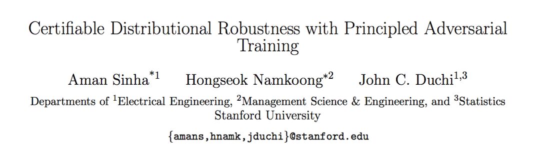 论文:Certifiable Distributional Robustness with Principled Adversarial Training