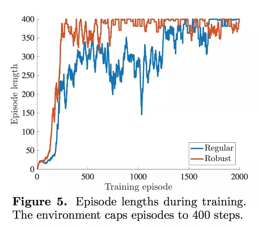 图 5. 训练中的 Episode 长度。纵坐标 Episode 长度的环境上限为 400 步长。