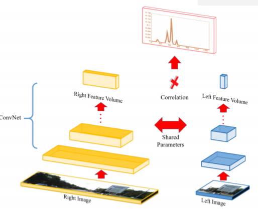 图 20:立体匹配的深度学习。训练 Siamese 网络以提取所有像素可能差异的边缘分布。源自 Luo et al. (2016)。