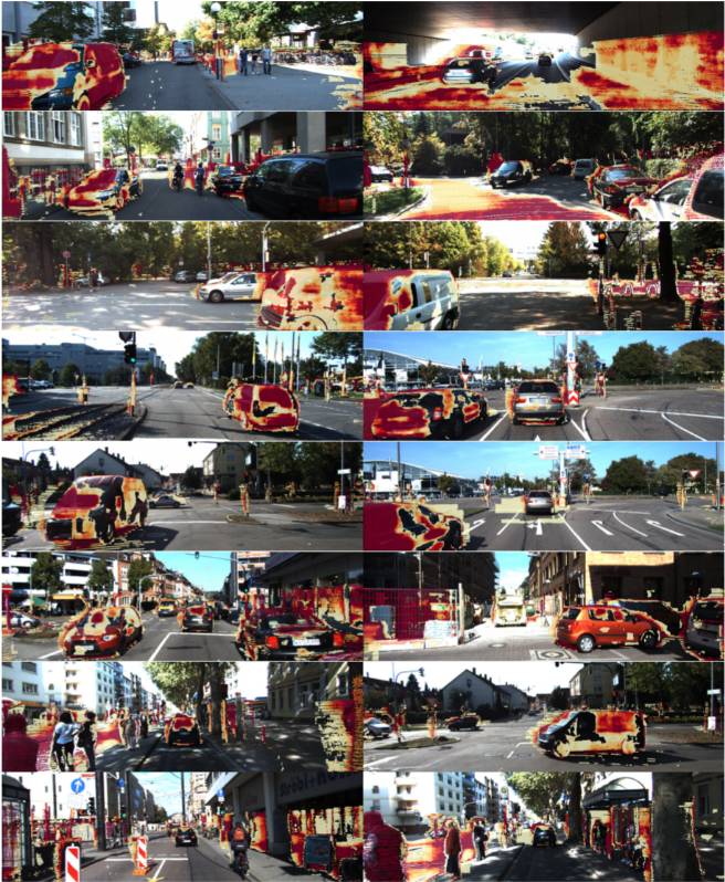 图 21:KITTI 2015 立体分析。该图展示了在 KITTI 2015 立体基准上发布的 15 个最佳立体方法的累积误差。根据 Menze & Geiger (2015) 定义的 3px/5% 标准,红色对应着大多数方法会导致坏像素的区域,黄色对应着某些方法失效的区域,透明对应着所有方法都正确估计。