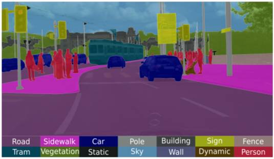 图 12:Cordts 等人做的 Cityscapes 数据集场景语义分割,2016 年记录于苏黎世