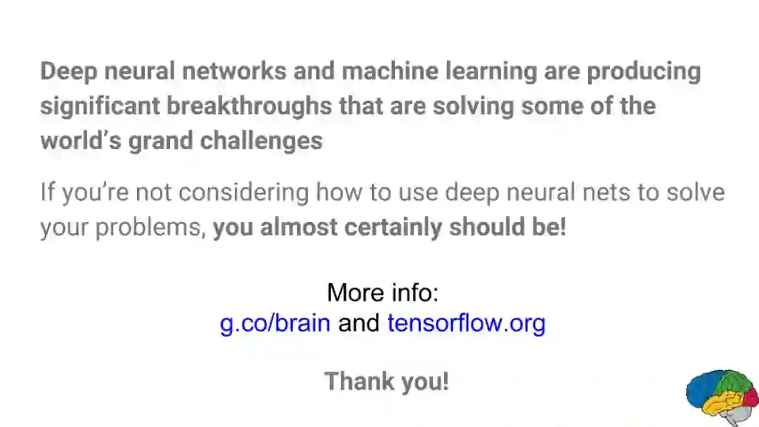 深度学习现在是 AI 领域中最受欢迎的技能之一,应用也十分广泛,且在AI领域也取得了突出的成就。今天给大家带来的是谷歌大神Jeff Dean64页ppt讲述《用深度学习解决挑战性问题》(Using deep learning to solve challenging problems presentation)。
