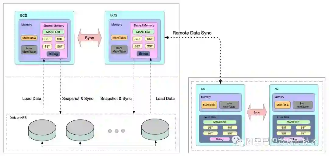 共享内存中的数据会定时的创建出 SnapShot,异步同步到云盘中进行存储,每次 SnapShot 的同步均会计算两次 SnapShot 之间的差异,只进行增量同步操作。其他的诸如后台加速合并的层级限制,SSTMove 的层数判断等细节均不细表。