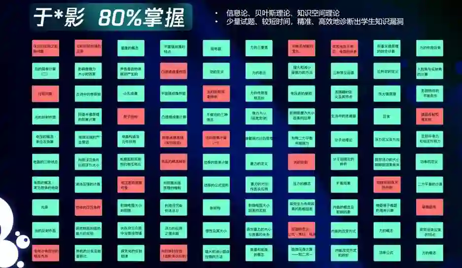 比如过去的一些历史和记录我们能够利用过来,给学生评测此刻的学习状态。每一个知识点上我们都能够评测出学生的学习状态。