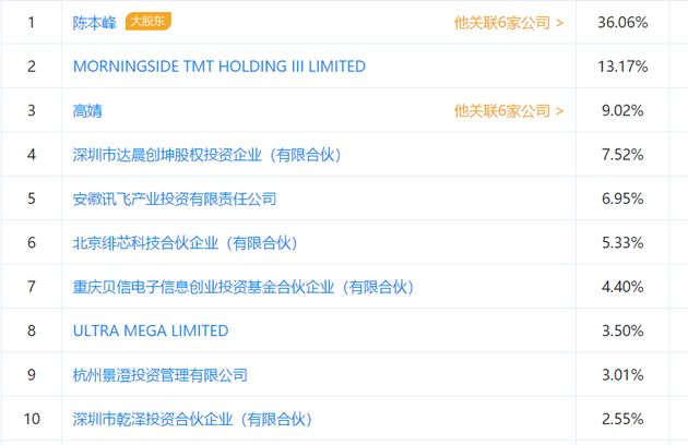 资料显示,红芯浏览器为美通云动(北京)科技有限公司开发运营,企查查显示该公司已改名为红芯时代(北京)科技有限公司。该公司成立于2012年9月,陈本峰为法定代表人,并持股36.06%。达晨创投、晨兴资本、科大讯飞等都在股东之列。