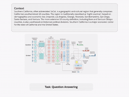 问答。问答(QA)模型接收一个问题以及它所包含的必要的信息的上下文来输出理想的答案。我们使用斯坦福问答数据集的原始版本(SQuAD)来完成这项任务。该上下文是从英文维基百科中摘取的段落,答案是从文章中复制的单词序列。