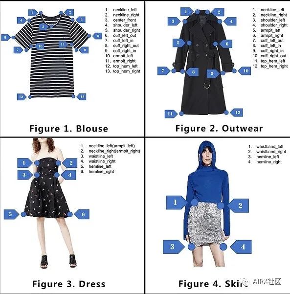 检测从阿里巴巴电子商务平台收集的衣服形象的关键点。总共有五种图像,共五个类别:上衣,外套,裤子,裙子,衣服