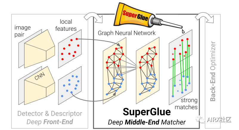 SuperGlue是在Magic Leap完成的2020 CVPR研究项目。SuperGlue网络是一个图形神经网络,结合了最佳匹配层,该层经过训练可以对两组稀疏图像特征进行匹配。