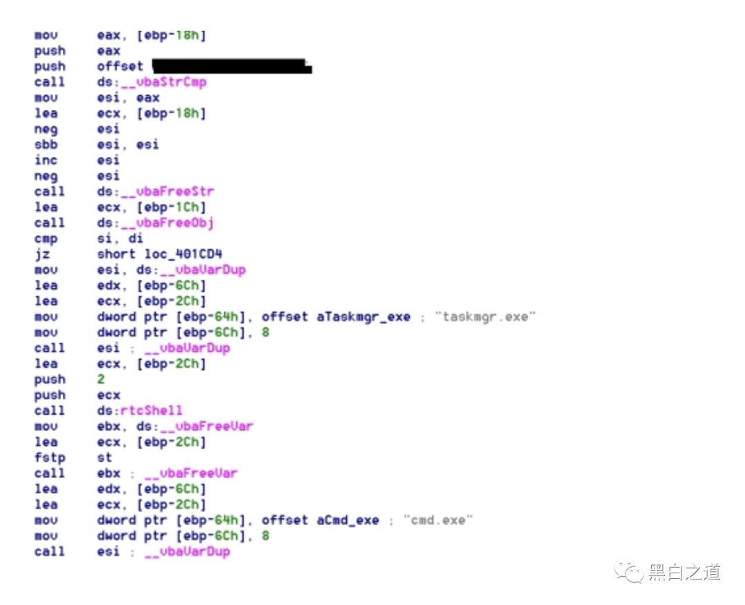 得到该程序相关工作流程,当输入密码正确时,调出taskmgr.exe