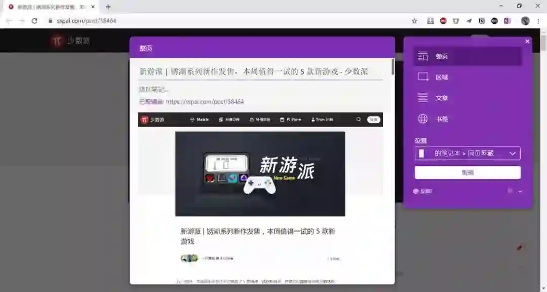 在桌面端,OneNote 与印象笔记都支持网页剪藏的浏览器插件,其中 OneNote 还支持在保存文章前进行内容过滤,可以选择单独仅保存文章,或是整页保存。印象笔记也支持在保存文章前进行批注等操作,体验不相上下。
