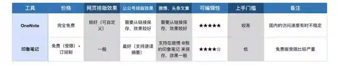 总的来说,OneNote 与印象笔记两者在保存文章的体验上各有千秋。考虑到价格因素,保存网页方面我更推荐完全免费的 OneNote,如果你更需要保存公众号文章,又或者你已经订阅了印象笔记,那么印象笔记或许更适合你。