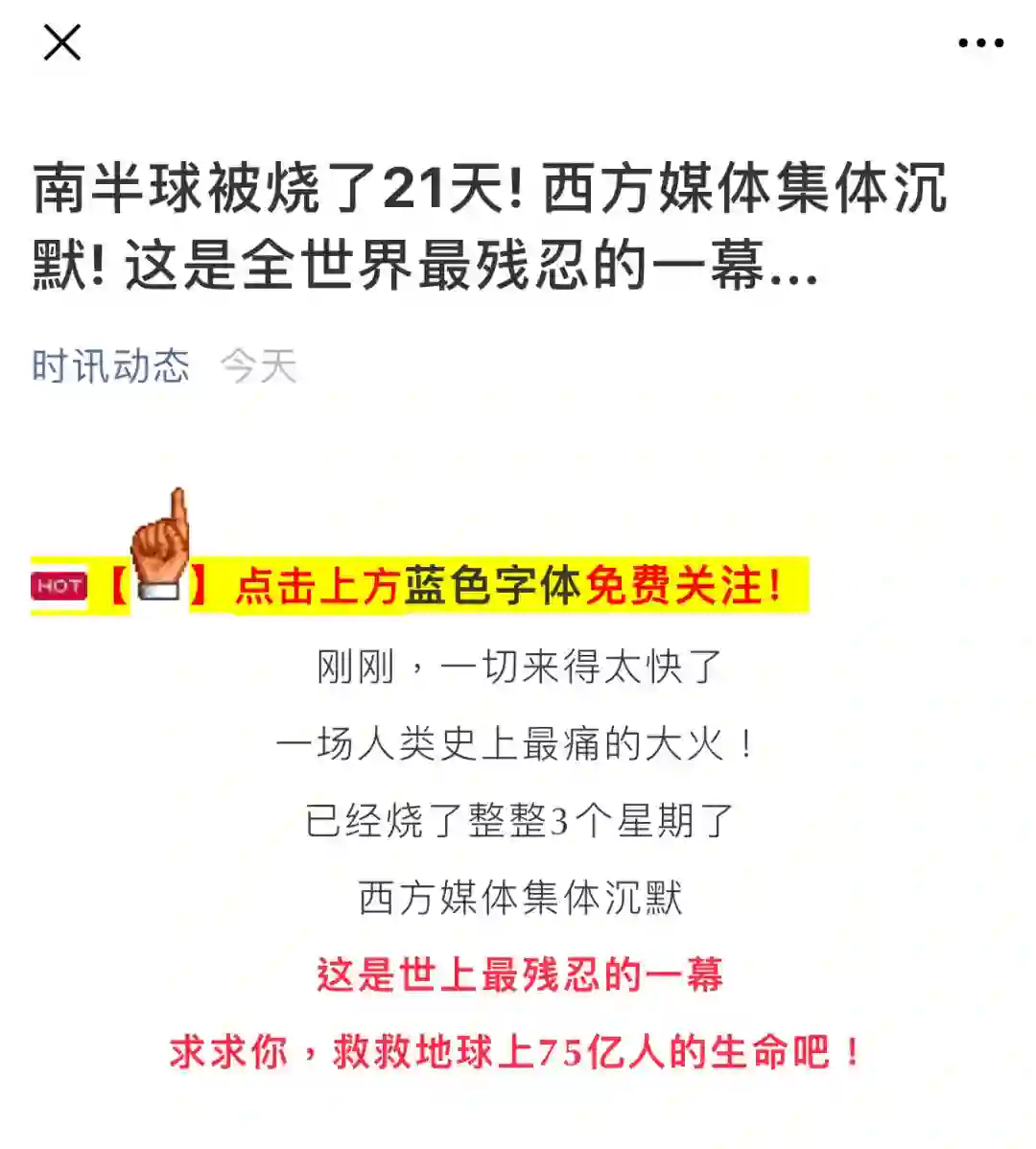 有些图看上去有些相似倒也作罢,有些图已经虚假到违背常识,为何互联网传播之中,会对其中虚假的成分选择无视?为何远在千里之外的雨林大火,会让某些网友潸然落泪?