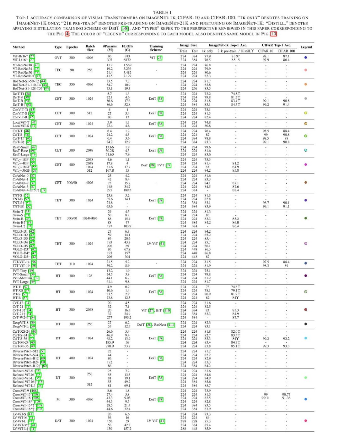 割)的 100 多个视觉 Transfomer。