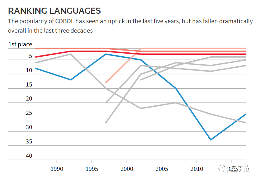 此外,在过去五年中,COBOL的普及率呈上升趋势。虽然在过去的30年中,总体下降幅度很大。