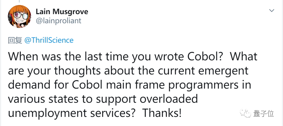 甚至,有网友还就此次各大洲召集COBOL程序员询问了该作者,虽然尚未得到回复。