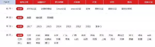 一,筛选菜单,如“科目”这一层级中的“JAVA认证”等需要通过分析用户需求,也就是关键词数据分析,分析需求占比,合理建设TDK,通过大量筛选组合获取流量。