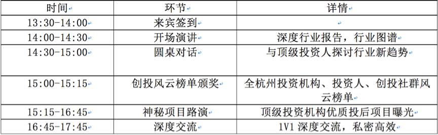 本次活动,36氪创投助手将发布独家产业链深度行研报告,与您分享最新行业动态,发现新风口和新趋势;投资人圆桌讨论,我们会邀请全杭州一线投资机构合伙人,分享独家投资秘诀;投资机构风云榜,将会评选出全杭州最有影响力的投资机构、投资人和创投社群;顶级机构私房投后项目独家路演,现场1V1深度交流,私密高效,让您不再错过好项目。