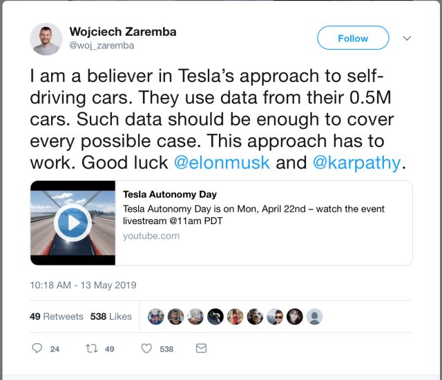 最后,即使在原则上这一切都是可行的,我们也不清楚在特斯拉内置的电脑的限制下是否可行。