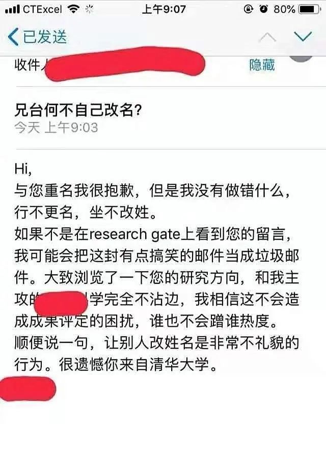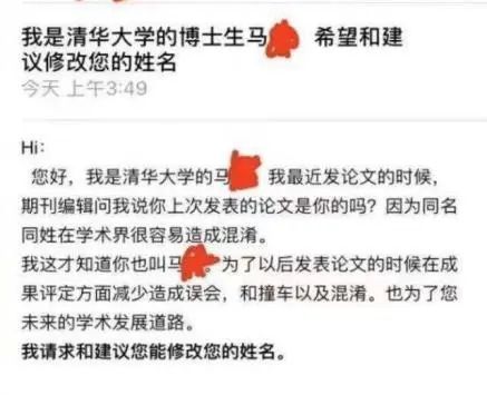 去年,一位清华的马姓博士生因为别人和自己重名就发邮件要求重名者改名这一事件不知道大家还记不记得?
