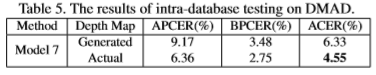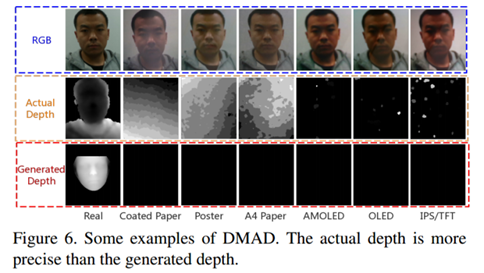 4. 提出了新型数据集 Double-modal Anti-spoofingDataset (DMAD) ,第一次对 真实传感器感知的Depth 和 PRNet产生的伪Depth 作为监督信号时的性能差异进行实验分析。
