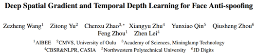 [2]Zezheng Wang et al., Deep Spatial Gradient and Temporal Depth Learning for FaceAnti-spoofing, CVPR2020 (Oral)