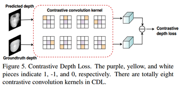 3. 为了让网络更好地学习到细节的spoofing patterns,提出了细粒度的监督损失:Contrastive Depth Loss (CDL) 。