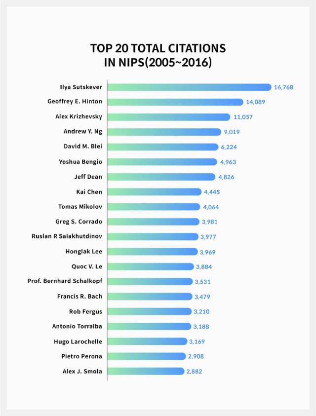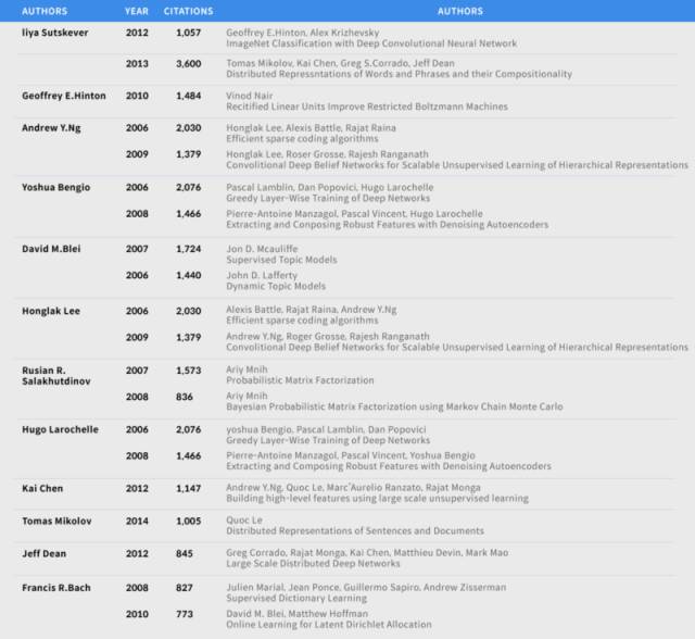 在过去的12年里,NIPS中被引用次数最高的前20名作者