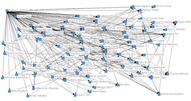 处于中心的Michael I. Jordan的AI研究人员网络如下所示。