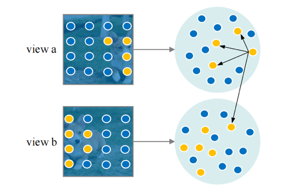 图2 邻居挖掘。黄色的实心圆圈是来自不同视图中目标“狗”的像素。