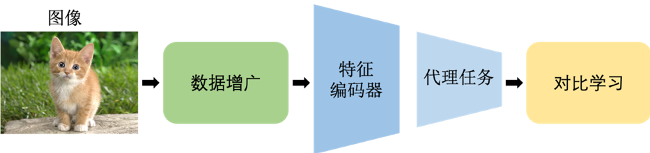 内在相似性指的是,数据经过不同的变换后,保持自身的相似性,由自监督中正样本对和负样本对的对比学习来实现——对比学习典型流程如图4。