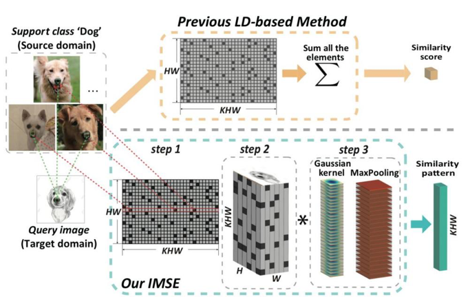 本文探讨一个新的学习问题,小样本无监督域适应(FS-UDA),即在源域样本受限(小样本)的情况下,学习一个模型将小样本的源域知识迁移到无标签的目标域中。它存在以下挑战:源域样本的稀缺,导致学习过程中存在过拟合问题;目标域无标签,给有效的域适应带来了很大的难度。为了解决以上问题,本文提出了一种适用于源域小样本限制的无监督域适应方法IMSE,即图像到类的稀疏相似编码,从局部特征的相似度编码与跨域对齐两方面解决以上问题。