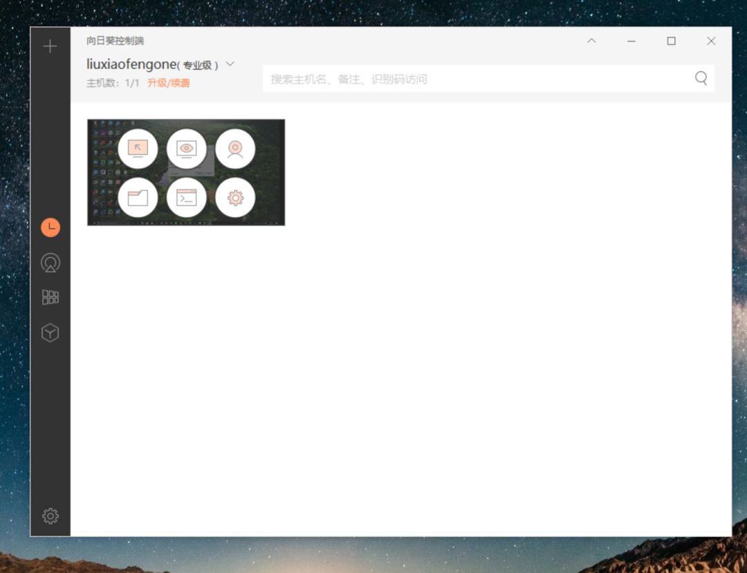 而实操起来也很简单,我在家中的电脑上安装了向日葵被控端,然后打开被控端后登录向日葵账号,之后就可以不用做任何的额外操作了,因为这时候被控系统服务已经在后台默默运行了。当我在公司电脑上安装控制端,并且登录相同的向日葵账号,就会在主机列表中看到家中电脑,点击「远程控制」然后输入家中电脑的账户和密码,就可以看到家中电脑的电脑桌面了。