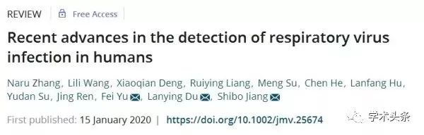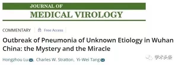 复旦大学医学院Hongzhou Lu等人在JMV上报道了武汉疫情。(https://onlinelibrary.wiley.com/doi/10.1002/jmv.25678)