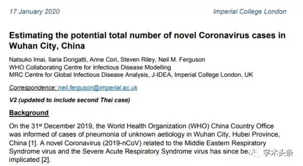 伦敦帝国理工学院MRC全球传染病分析中心三份关于武汉新冠肺炎疫情的建模估算报告。(https://www.imperial.ac.uk/mrc-global-infectious-disease-analysis/news--wuhan-coronavirus/)
