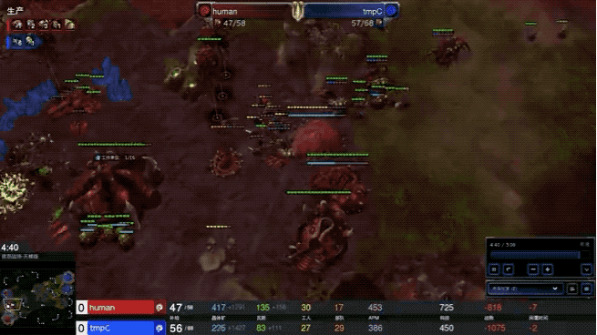 从上面的天梯测试图中不难看出,同样的AI在玩虫族时候的表现是最弱的;但虫族在人类玩家手上,那可是强得一批。